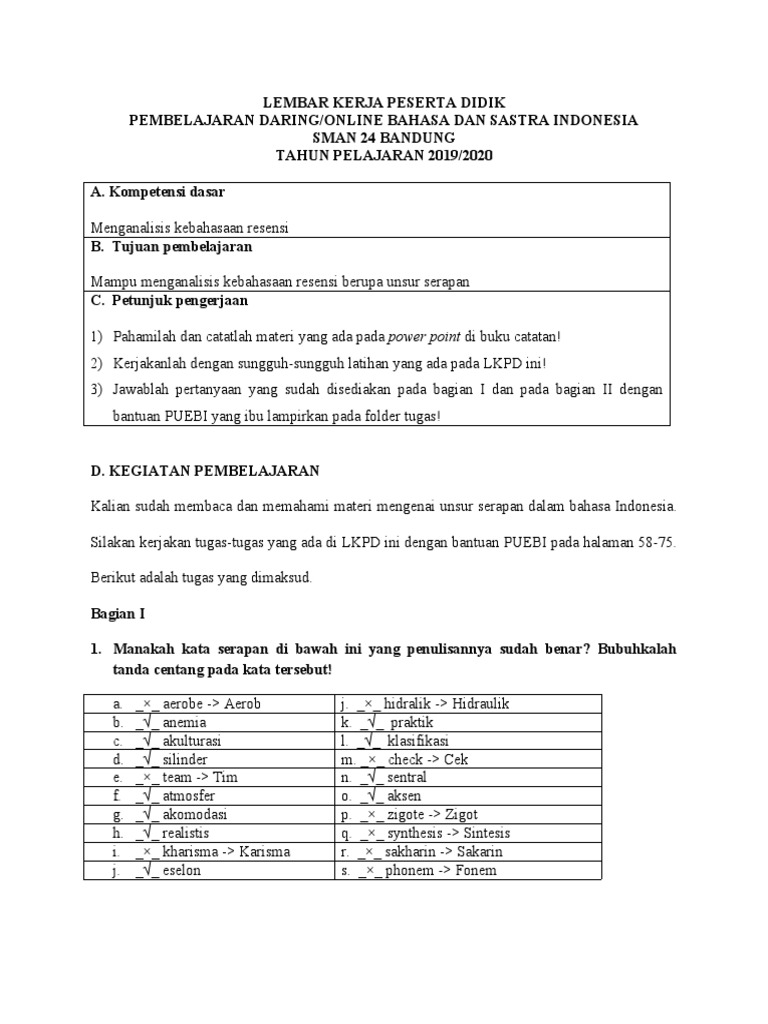 System) bukan sistim, frekuensi (inggris: 5 kata bahasa indonesia ini sering salah penulisannya, 'dimana' atau 'di mana' setiap hari kita sudah menggunakan bahasa indonesia dalam bentuk tulisan maupun ucapan. Kaidah ejaan yang berlaku bagi unsur serapan itu adalah sebagai berikut. Bubuhkan tanda centang (p) pada kata tersebut! Jika merujuk kata tempat maka penulisannya harus dipisah dengan kata awalan. 1.) manakah kata serapan di bawah ini yang penulisannya sudah benar? Penggunaan kata di yang benar. Oleh karena itu ejaan, tulisan, dan ucapan disesuaikan dengan cara pengucapan masyarakat indonesia. Lalu, mengapa berubah jadi nomor? Kedua, kata serapan yang pengucapan dan penulisannya disesuaikan dengan kaidah bahasa indonesia. A (arab, bunyi pendek atau bunyi panjang. Oleh karena itu wajar saja jika bahasa belanda sangat banyak terdapat di dalam bahasa indonesia. Bubuhkan tanda centang (p) pada kata tersebut!